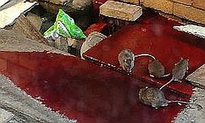 Rats feeding on red waste