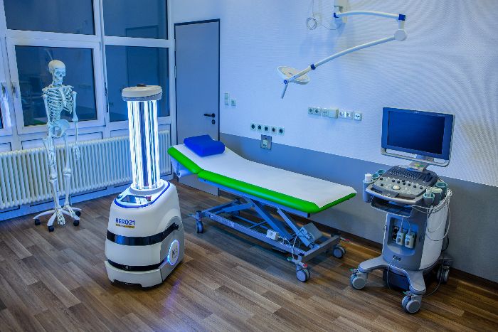 The HERO21 system is effective in high-risk areas including operating theatres, emergency rooms, and ICUs, as well as in other hospital settings. Because UVC radiation is dangerous, people are removed from the room to be sanitised and the robot moves through the space. Disinfection is achieved automatically, precisely, quickly, and efficiently.
