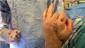 “The next problem was there wasn’t enough skin to cover the exposed delicate microvascular repairs in his palm, so we decided to attach his hand to his groin to borrow skin from there.